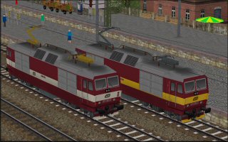 Elektrolokomotiven 163 004-5 und 163 081-3 der CSD. Die Fahrzeuge verfügen über bewegliche Stromabnehmer und