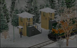 beiden Wintermodelle. Beleuchtung und Rauch sind verfügbar, soweit es die installierte EEP-Version unterstützt. Mit diesen Gebäuden können Schrankenposten, Blockstellen aber auch kleine Stellwerke dargestellt werden.
