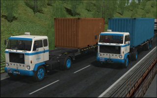 Das Vorbild für dieses Modell ist ein schwerer Frontlenker-LKW des schwedischen Herstellers "Volvo", der von 1965 bis 1977 in vielen verschiedenen Versionen hergestellt wurde. Den zweiachsigen Sattelzugmaschinen habe ich einen epochegerechten, ebenfalls zweiachsigen Sattelauflieger für den Containertransport zur Seite gestellt. Dessen Vorbild wurde vom niederländischen Hersteller "Pacton" gefertigt. Einige Container in 20ft, 30ft und 40ft Länge vervollständigen dieses Set. Bei den enthaltenen Modellen handelt es sich um Nachbauten in Anlehnung an realen Vorbildern, zu Gunsten der Performance wurden einige Details vereinfacht dargestellt.