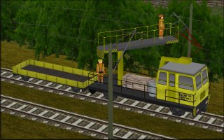 Das Fahrzeug dient zur Wartung und Installation der Oberleitung und ist in zwei Farben vorhanden. Es ist ein