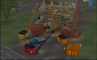 (Gelb, Orange, Rot/Schwarz) mit Kettenfahrwerk enthalten, die über verschiedene Anbauteile verfügen. Für die Ladefunktion vorbereitet sind die Modelle mit Kranhaken und Magnet. Die Modelle mit Greifer und Abrisskugel sind nicht für die Ladefunktion geeignet, sondern dienen der Darstellung von Szenen auf Baustellen. Alle Fahrzeuge verfügen über bewegliche